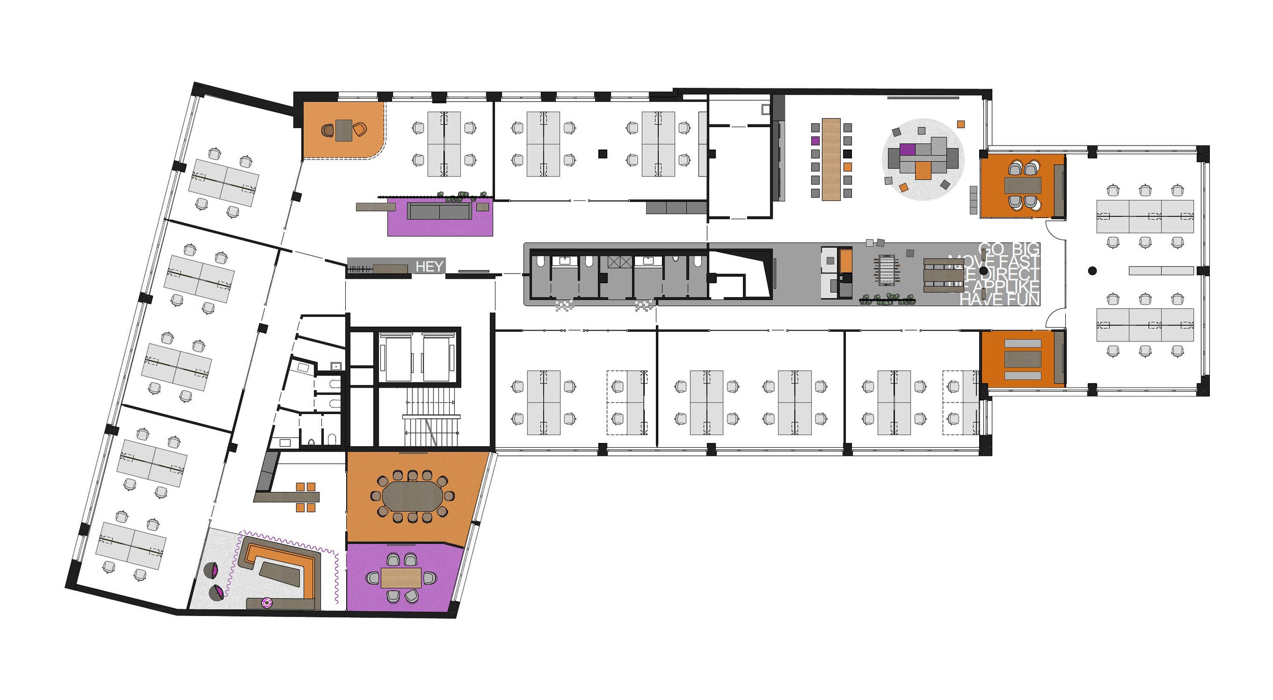 Trotz des Standortwechsels, vom Szeneviertel Schanze zur exklusiven Alsterlage in St. Georg, konnte ein innovativer Start-up-Charakter durch das industriell offene, und zum Teil rough konstruktiv ausgelegte Layout auf den 3 Etagen mit 3.000 Quadratmetern Bürofläche gestaltet werden.