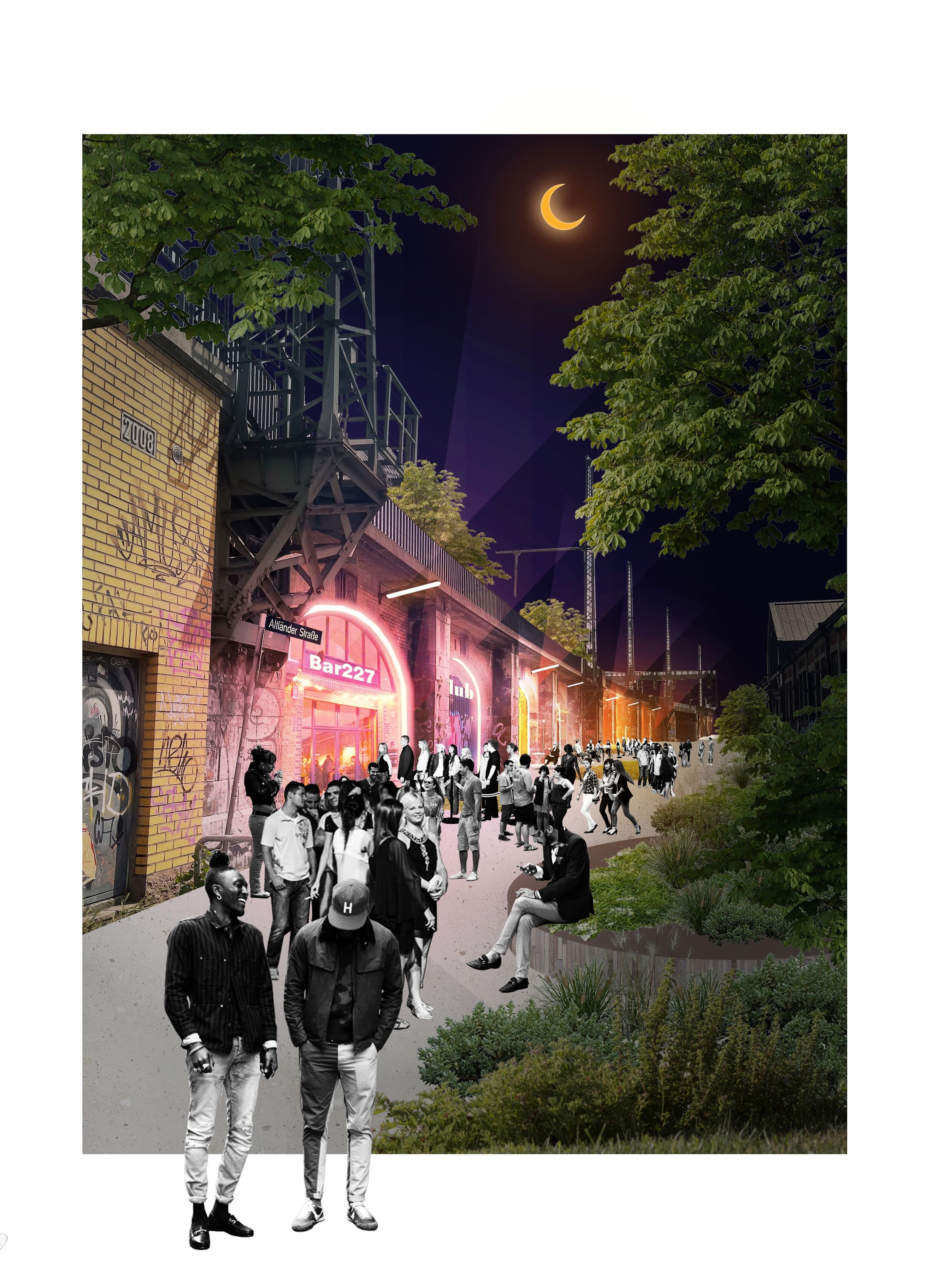 Authentisch für das der Umgebung entsprechende Erscheinungsbild wurde die sichtbare Fassade der beiden Clubs durch die Künstler Bobbie Serrano, Bona Berlin und Paul Manzey gestaltet.