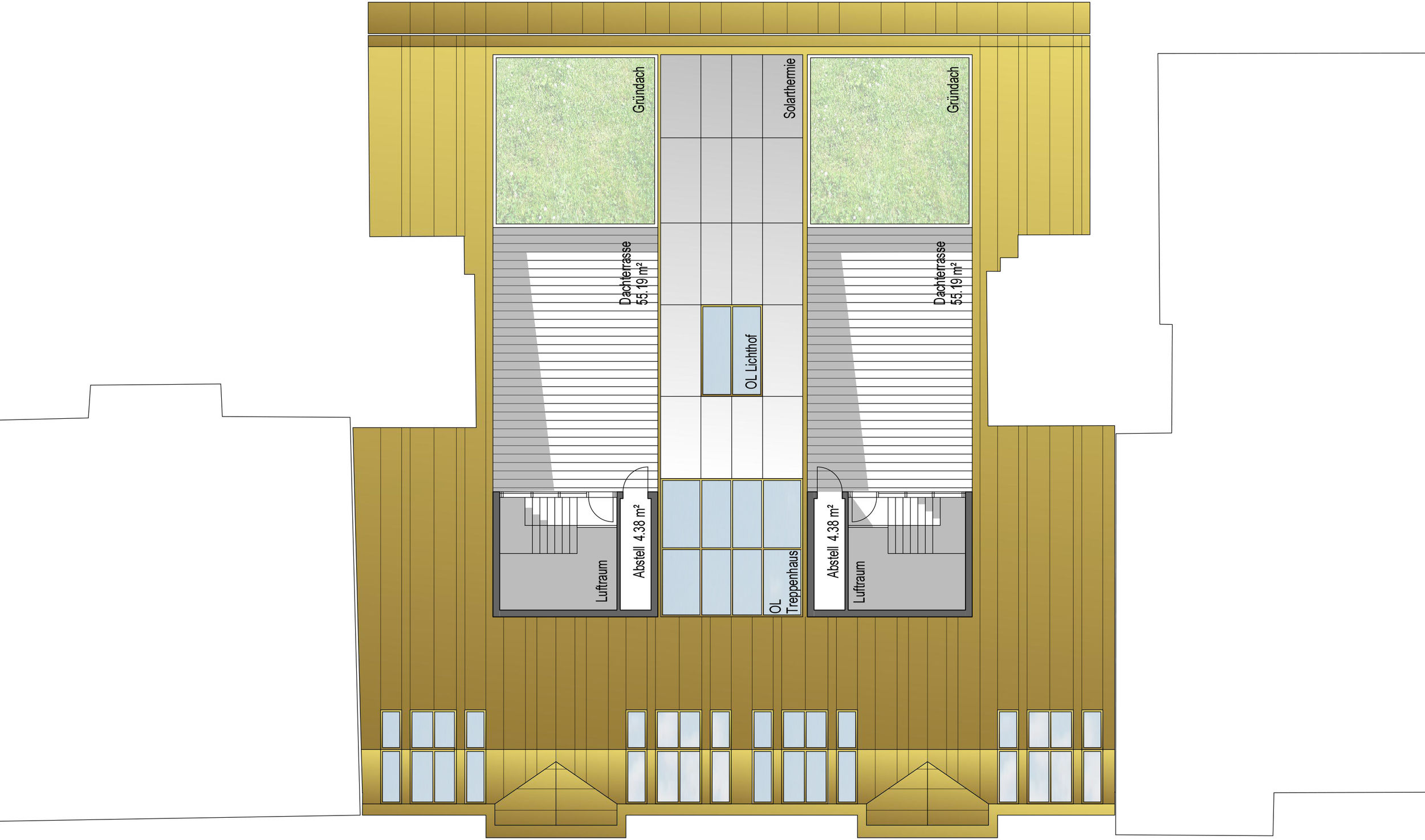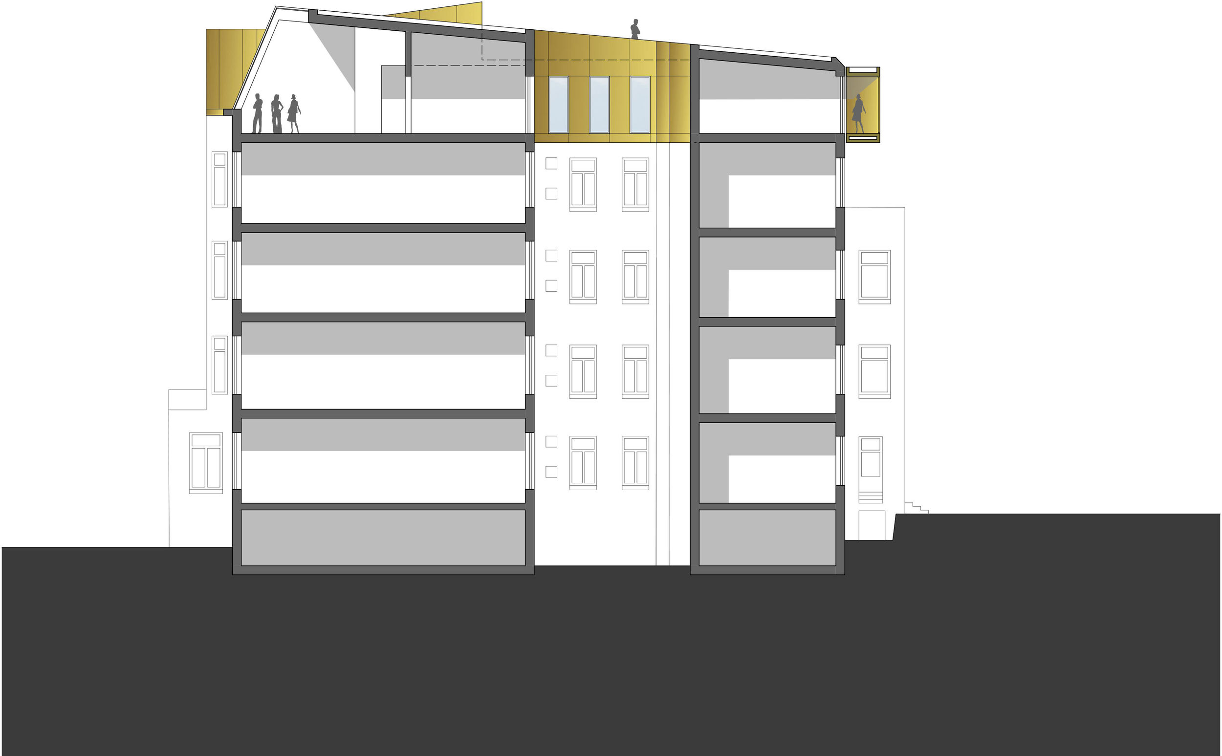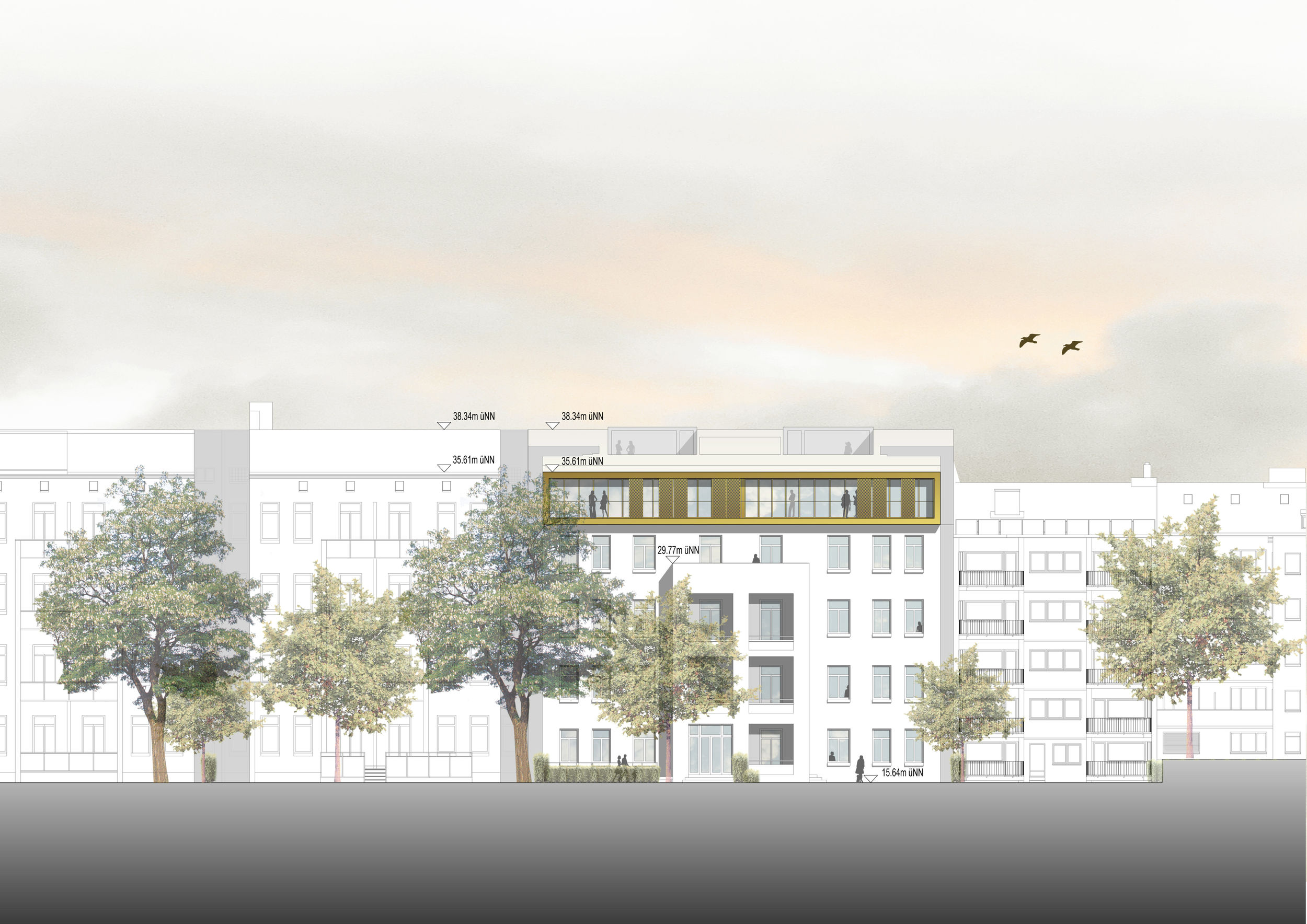 In Hamburg-Harvestehude, in der Hagedornstrasse 31, entstehen zwei hochwertige Penthouses auf dem historischen Mehrfamilienhaus aus dem Jahre 1889, das 1939 vom Architekten Werner Kallmorgen umgebaut wurde. Das viergeschossige Bestandsgebäude wurde als Mauerwerkskonstruktion mit Holzbalkendecken errichtet und erhält mit den zwei neu erstellten Penthouses einen neuen, dem Haus angemessenen Dachabschluss. Die zwei Penthouses sind über das gemeinschaftliche, innenliegende Treppenhaus und über den Personenaufzug erreichbar. Die Terrassen der Penthouses sind in die Dachhaut „eingedrückt“, so dass sie von der Straße aus nicht ersichtlich sind.