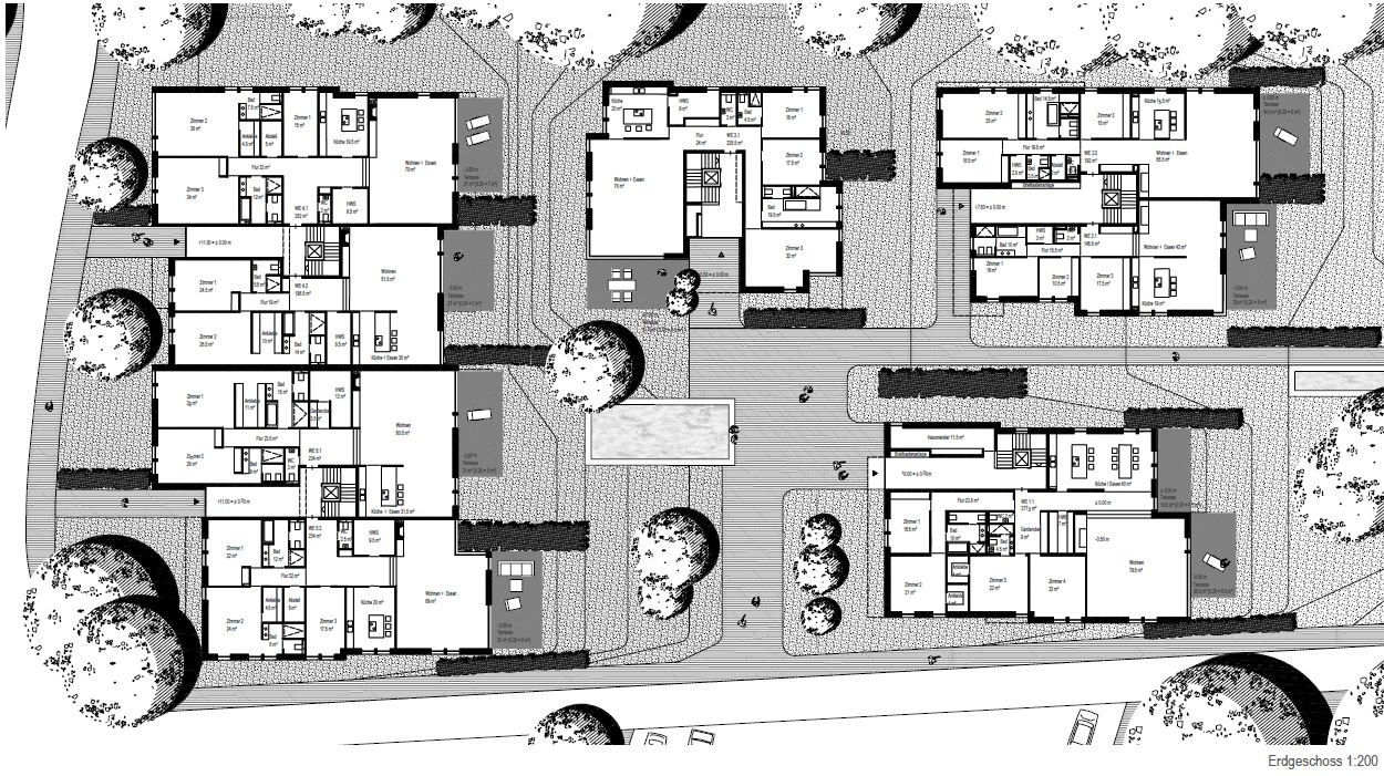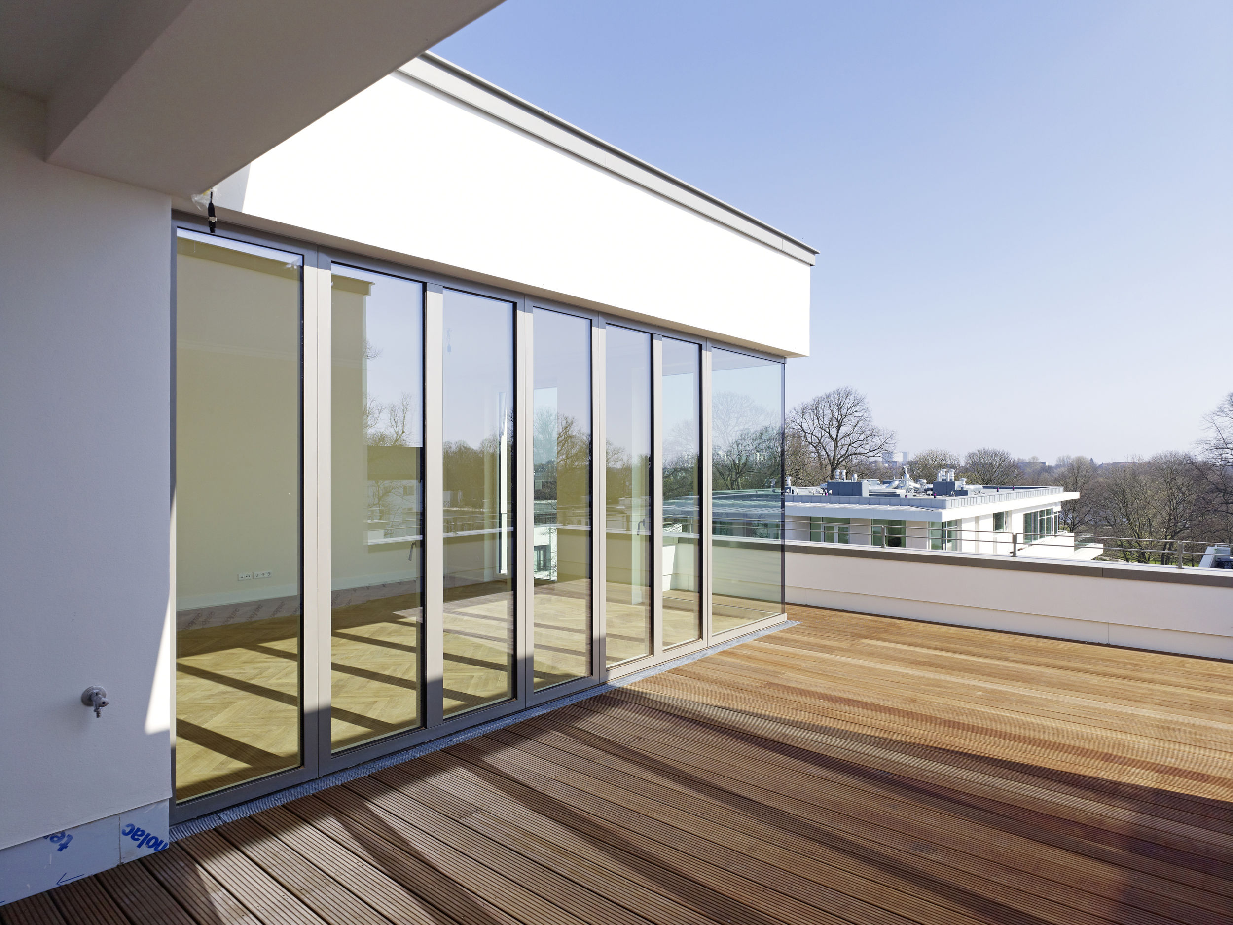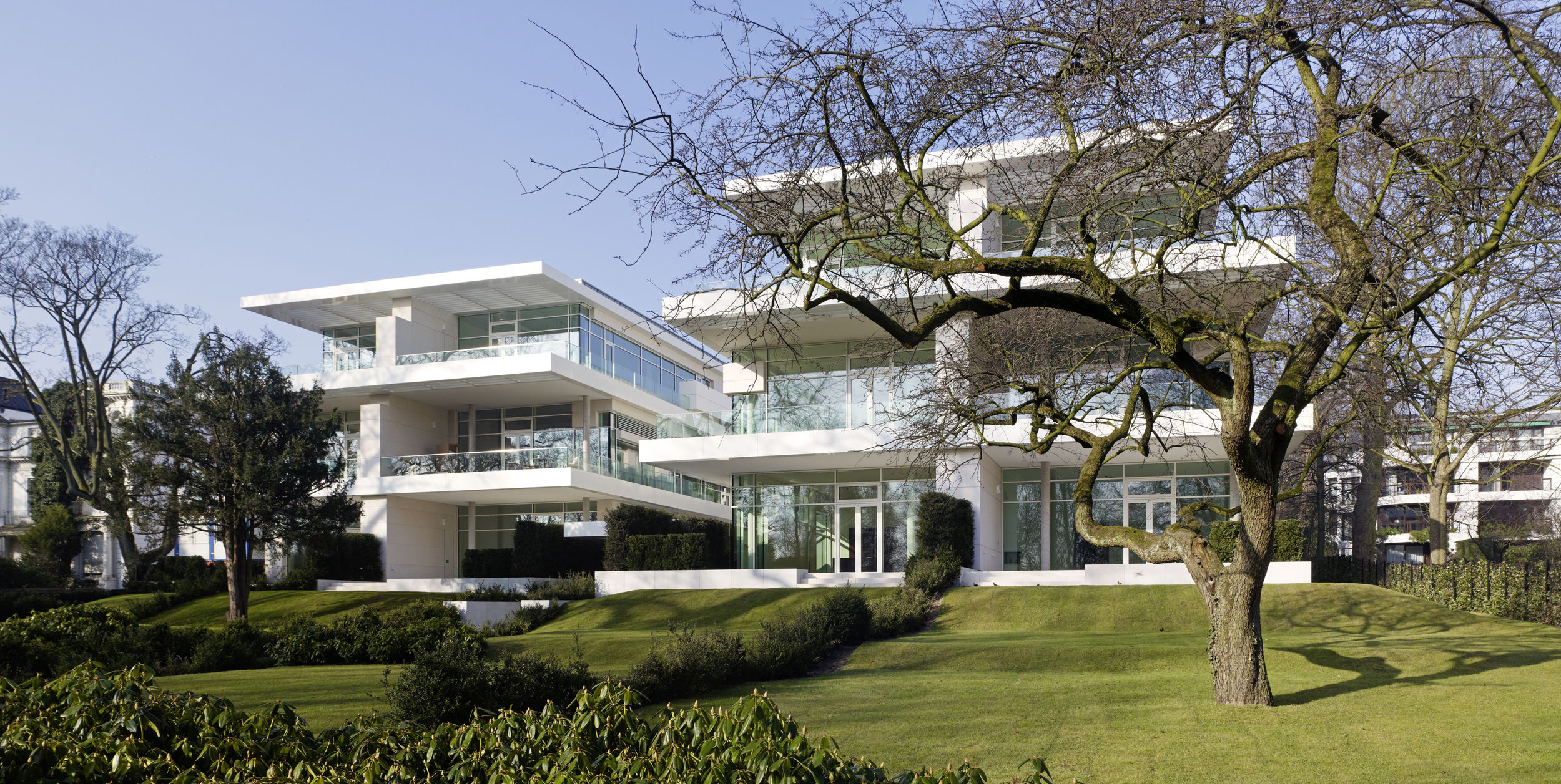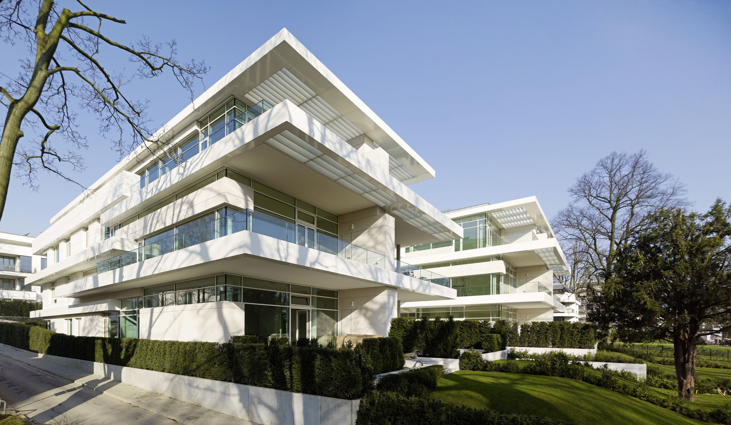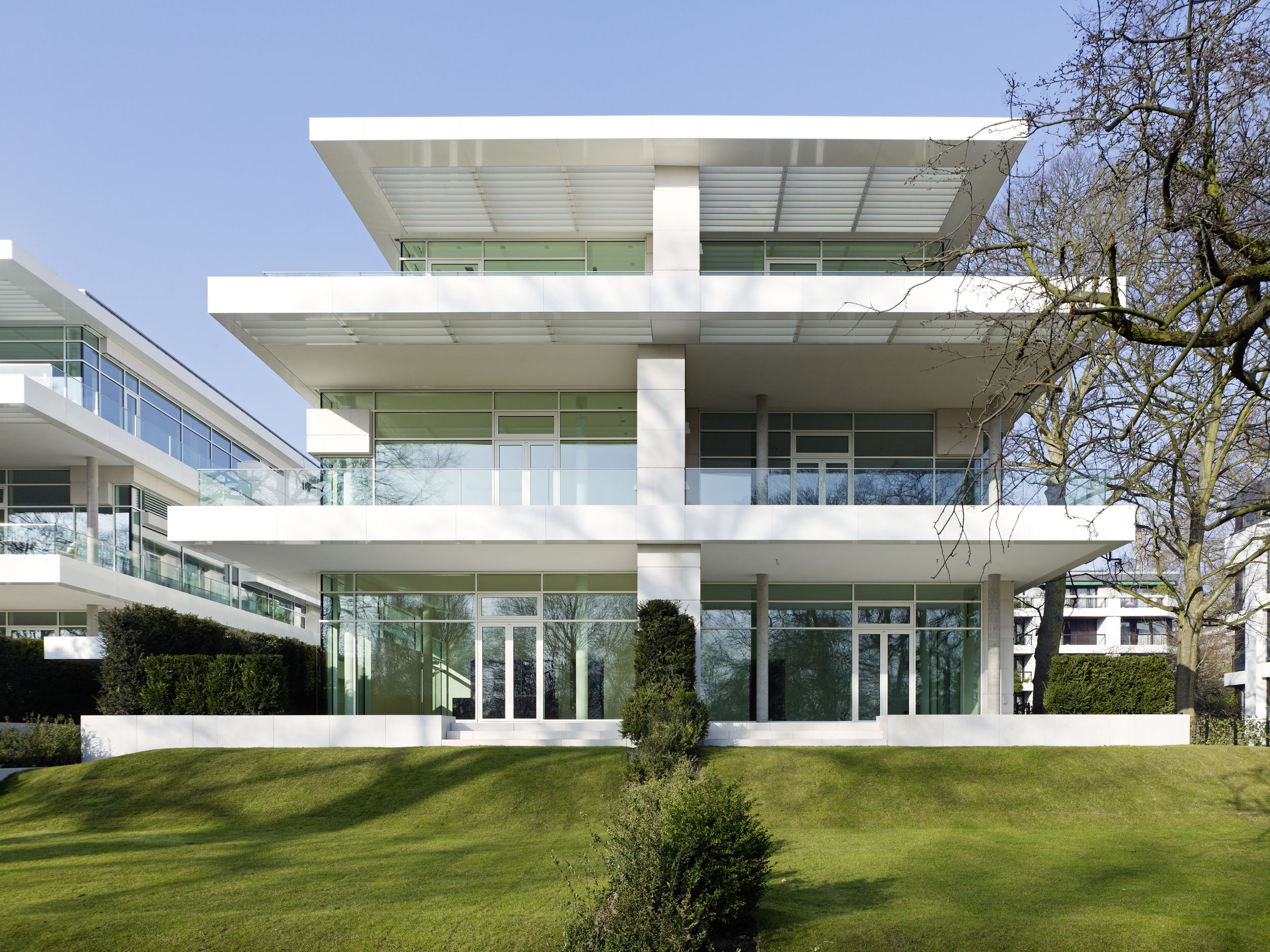 Die Besonderheit des Hamburger Stadtteils Harvestehude ist die ruhige begrünte Lage am Alsterpark. Das Ensemble besteht aus zwei Stadtvillen sowie einem Wohnpalais mit gesamthaft über 30 Wohneinheiten zwischen 145 und 300 m². Die Art des Bautyps der Stadtvilla an der wasserzugewandten Seite lässt den Blick zum Alsterpark auch für das höher gelegene Stadtpalais weitgehend zu. Die offene Bauweise lässt Innen- und Außenraum miteinander verschmelzen und erlaubt weite Blickachsen. Kleinmaßstäbliche Bauteile gliedern das kompakte Volumen der drei Wohnbauten; Vor- und Rücksprünge in der Fassade sowie Dachabstufungen unterstreichen dabei ihre vertikale Ausrichtung. Dem Projekt voran ging Ende 2009 ein mehrstufiger Wettbewerb, wobei sich die Büros BRT und BN Architekten den ersten Platz teilten. Die Realisierung aller dreier Gebäude und der exklusive Innenausbau der meisten Einheiten wurde BN Architekten übertragen.