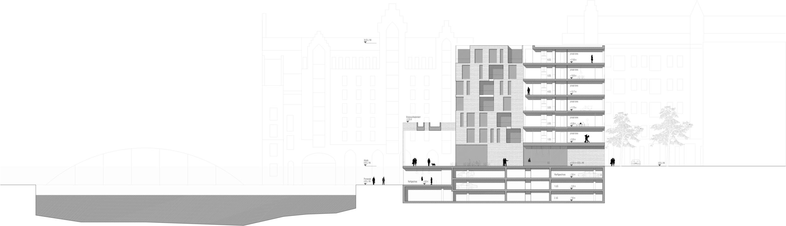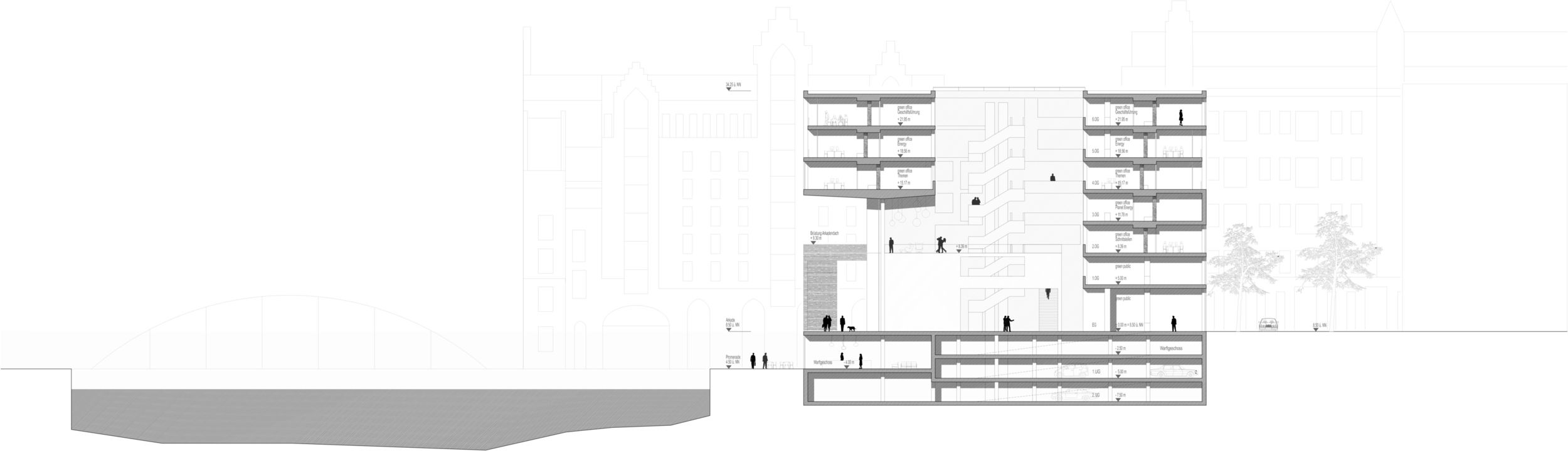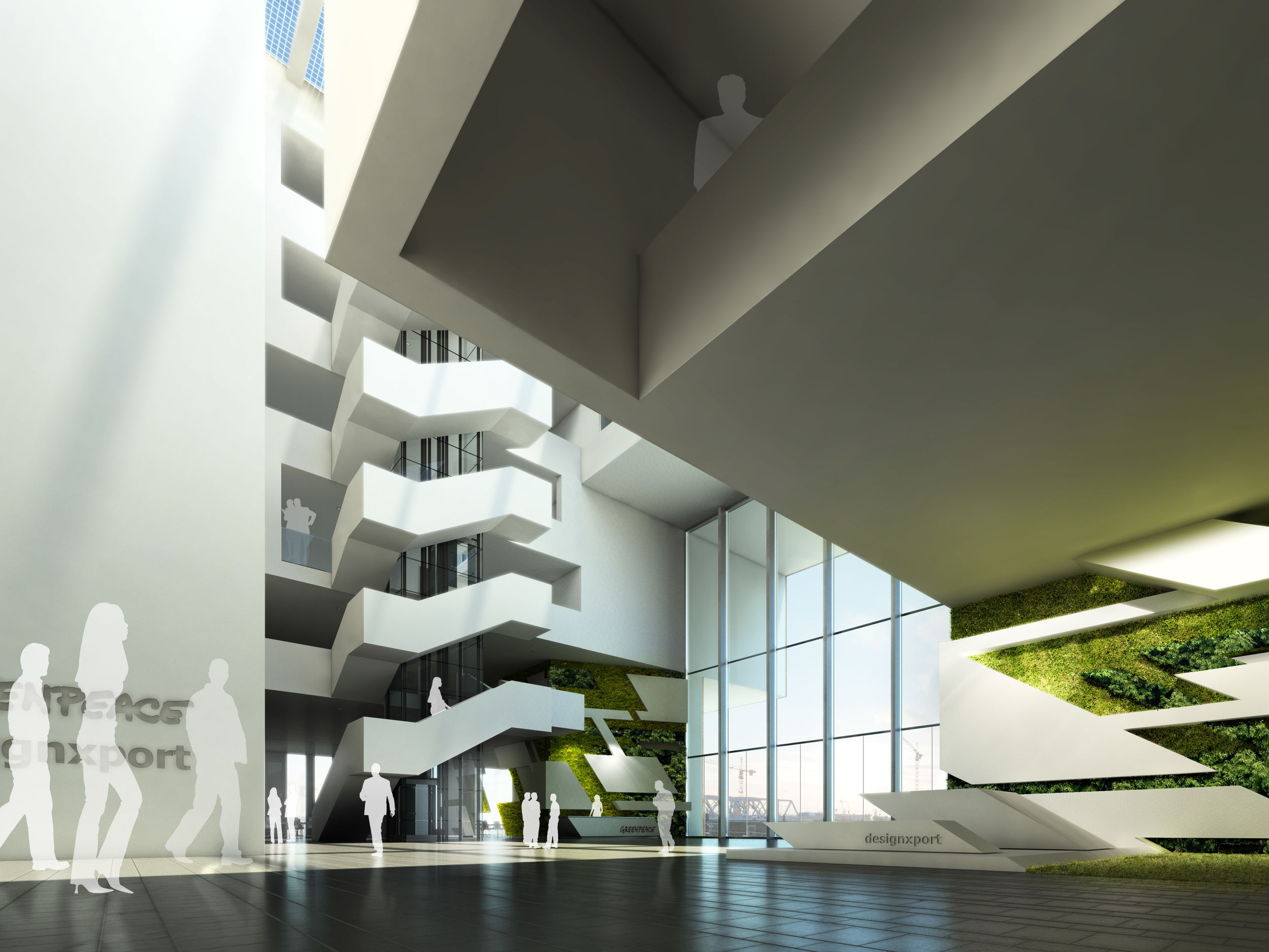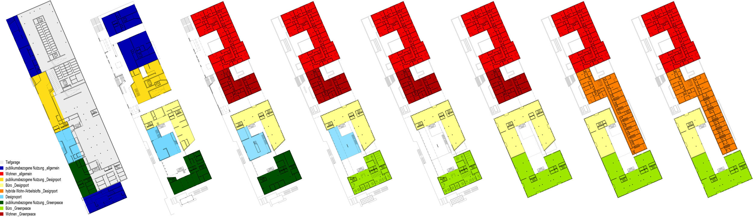 Eine sowohl städtebaulich anspruchsvolle, als auch funktionell angemessene Lösung für die Bebauung des Magdeburger Hafens zu entwickeln, war hier das Ziel. Die „Greenpeace e.V. Deutschlandzentrale“, „Designxport“, sowie vielfältige Wohnkonzepte sollten den Komplex gemeinsam beziehen. Der Funktionsumfang des geplanten Gebäudeensembles musste ein extrem differenziertes Spektrum zwischen Flexibilität und fester Gebrauchsstruktur abdecken. In Zusammenarbeit mit dem Künstler Heiko Zahlmann konnte ein gemeinsamer dialogischer Ansatz von Architektur und Kunst entwickelt werden, in dessen Ergebnis sich die Idee bis in die Gestaltung des Baukörpers fortgeschrieben und dort eine subtile Aufhebung erfahren hat.