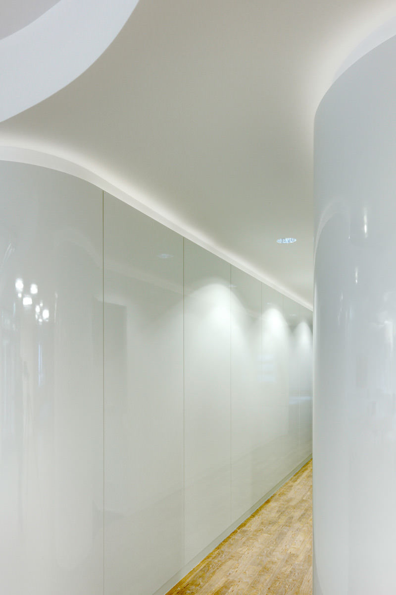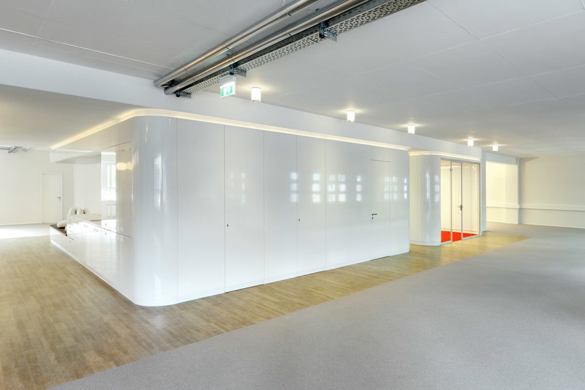 Ein individuelles Designkonzept für ein breites Nutzungsspektrum wurde entwickelt, welches effizientes und kreatives Arbeiten fördert. Ein spannender Kontrast zwischen den farbigen und dynamischen Formen im Treppenhaus und der Funktionalität der Büroetagen entstand. Das Miteinander von Kunst und Architektur findet im Außen- und Innenbereich ein harmonisches Zusammenspiel und bilden einen Arbeitsort zum Wohlfühlen.