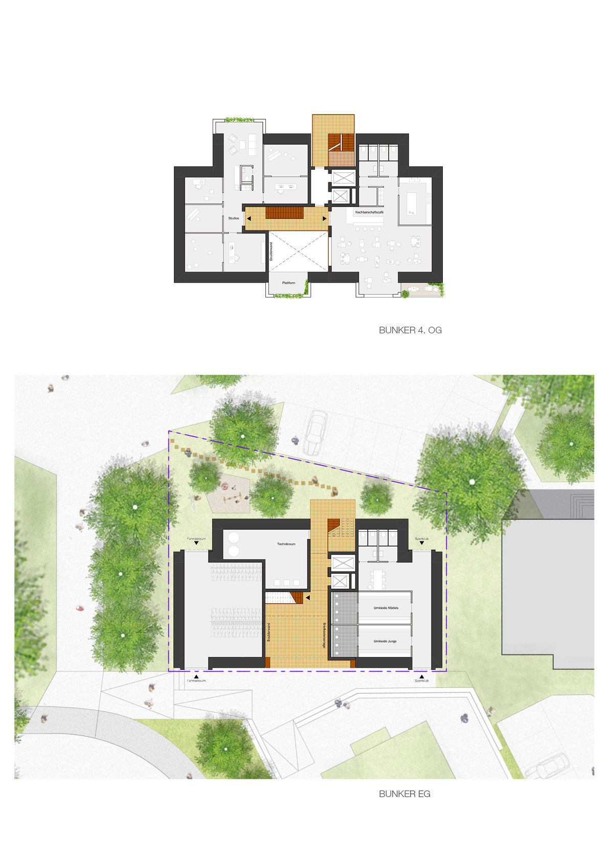 Nach unserem Konzept für eine ebenso sinnvolle, wie Zeichen setzende Transformation des im 2. Weltkrieg errichteten Bunkers soll dieser neue Mittelpunkt und sichtbares Symbol für den Aufbruch dieses Quartier werden.