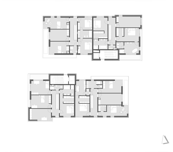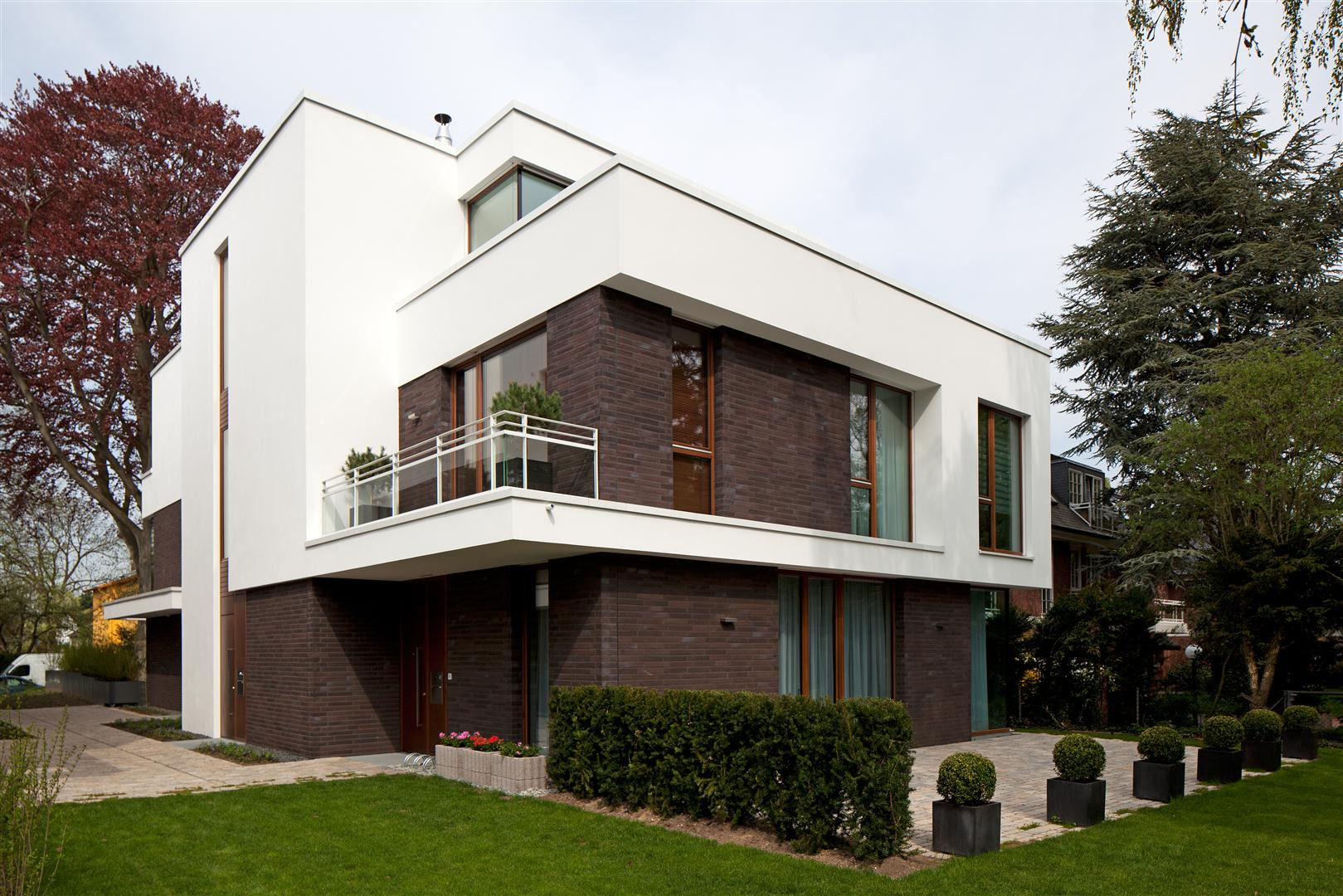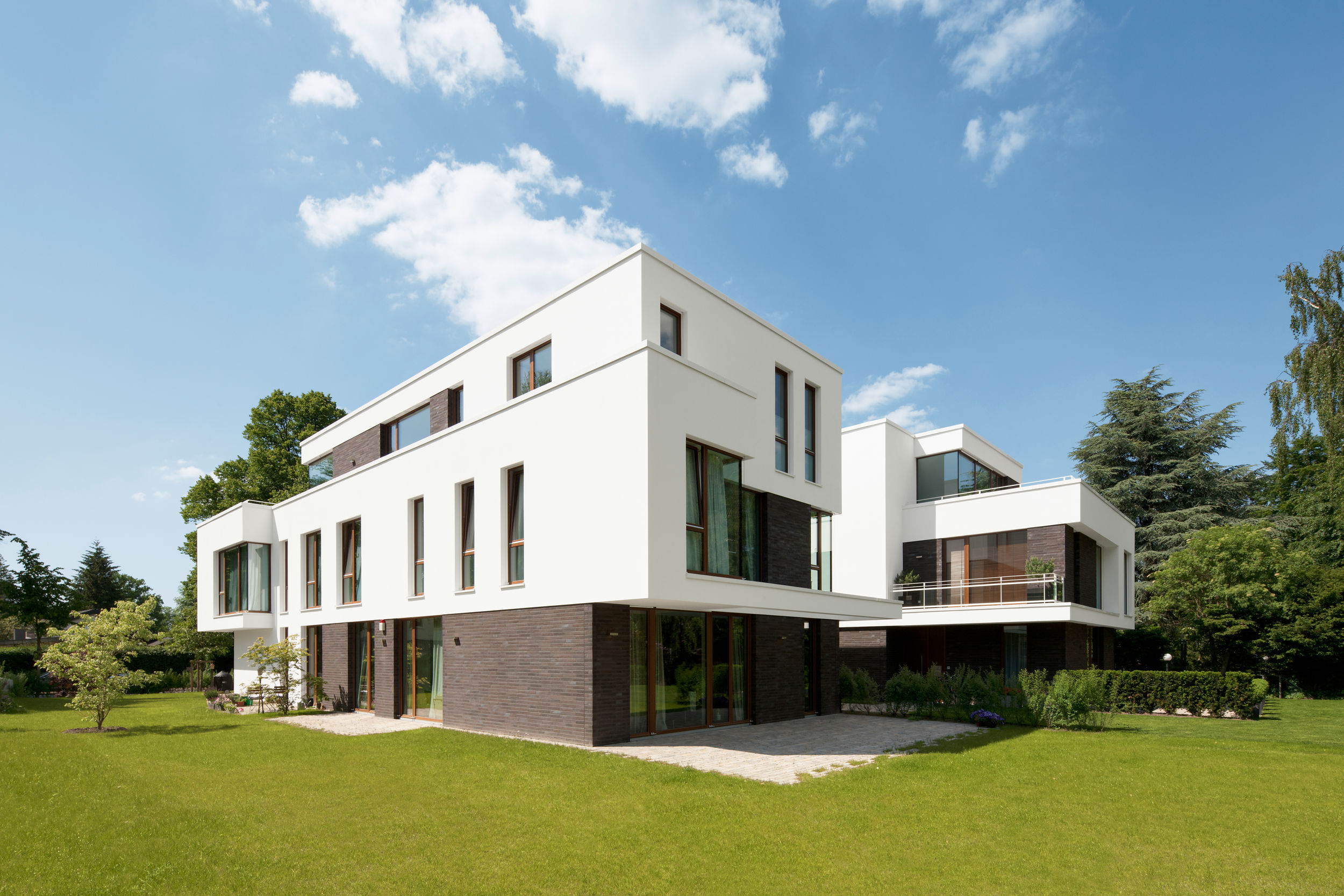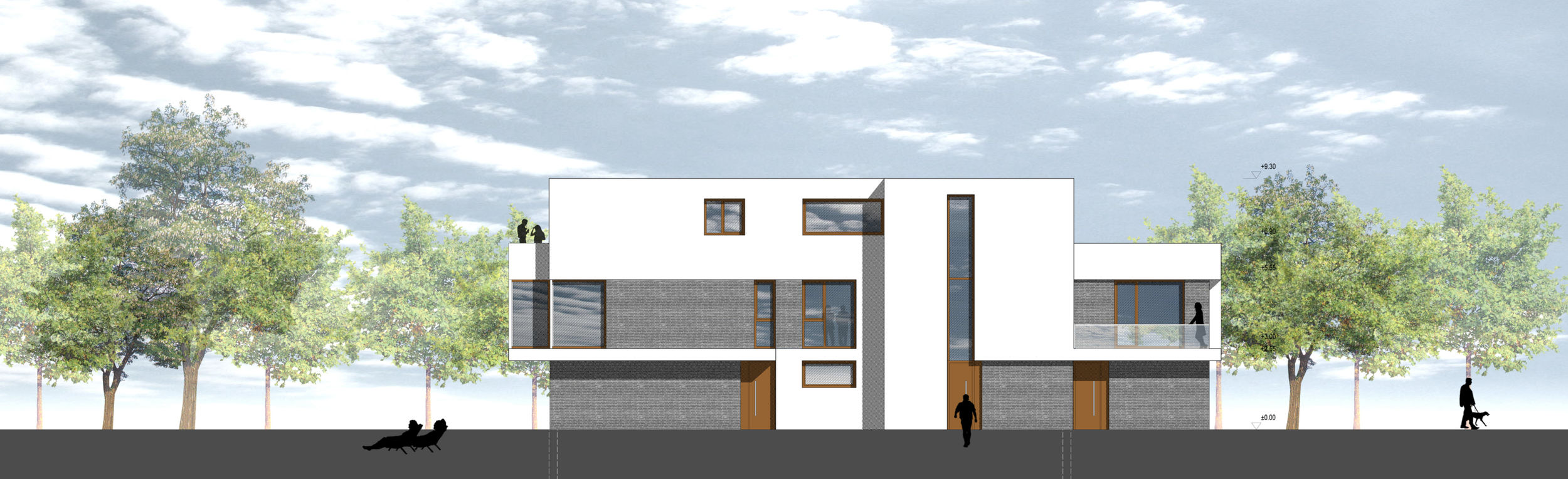 Auf einem Gartengrundstück im Westen Hamburgs entstanden zwei Villen in bester Lage. Die Anordnung der beiden Gebäude auf dem schmalen Grundstück wird durch die deutlich sichtbare Idee einer verbindenden Fassaden- und Strukturausformung unterstrichen. Mit einer genau abgestimmten Materialwahl schafft das Gesamtkonzept ein harmonisches und einladendes Wohnumfeld. Durch Vor- und Rücksprünge in der Fassade, private Eingänge für alle Wohneinheiten, sowie die Verschiebung der Balkone und Terrassen wird die Privatsphäre gesteigert und der Blick auf das Gartengrundstück ermöglicht.
